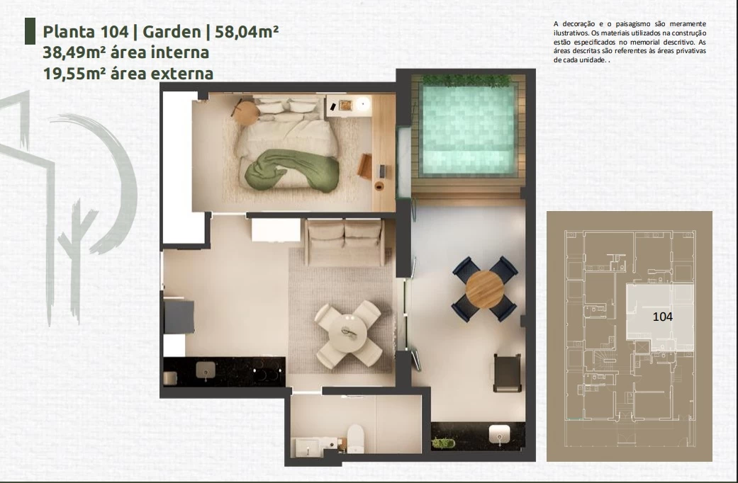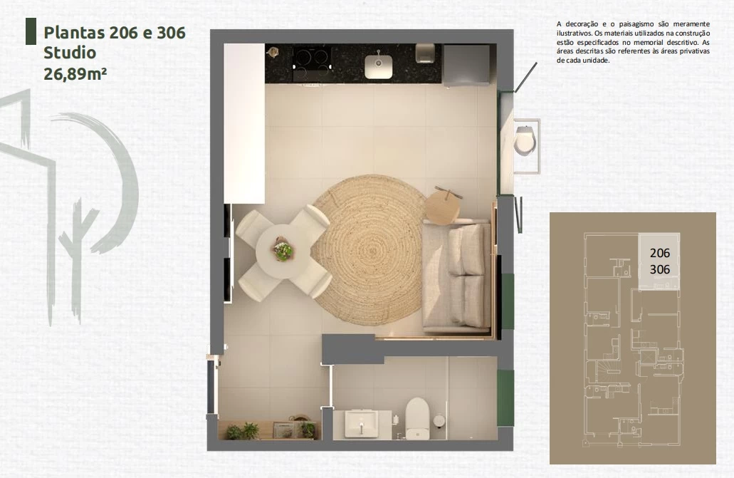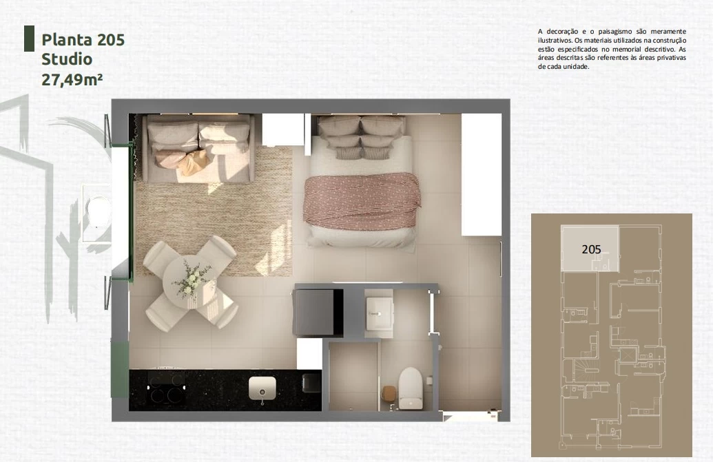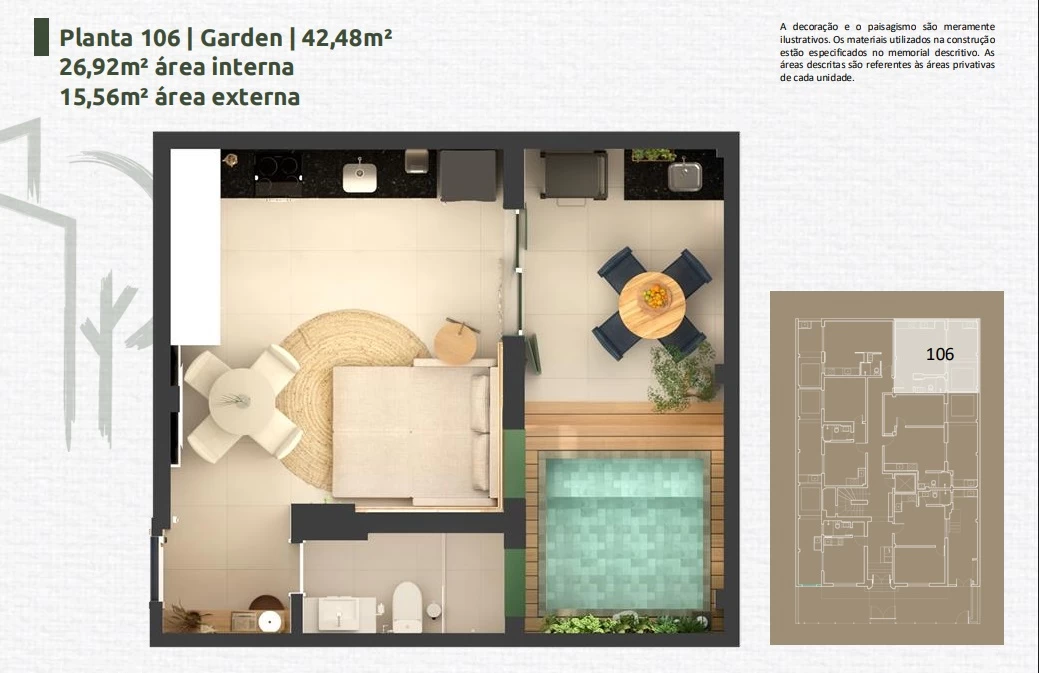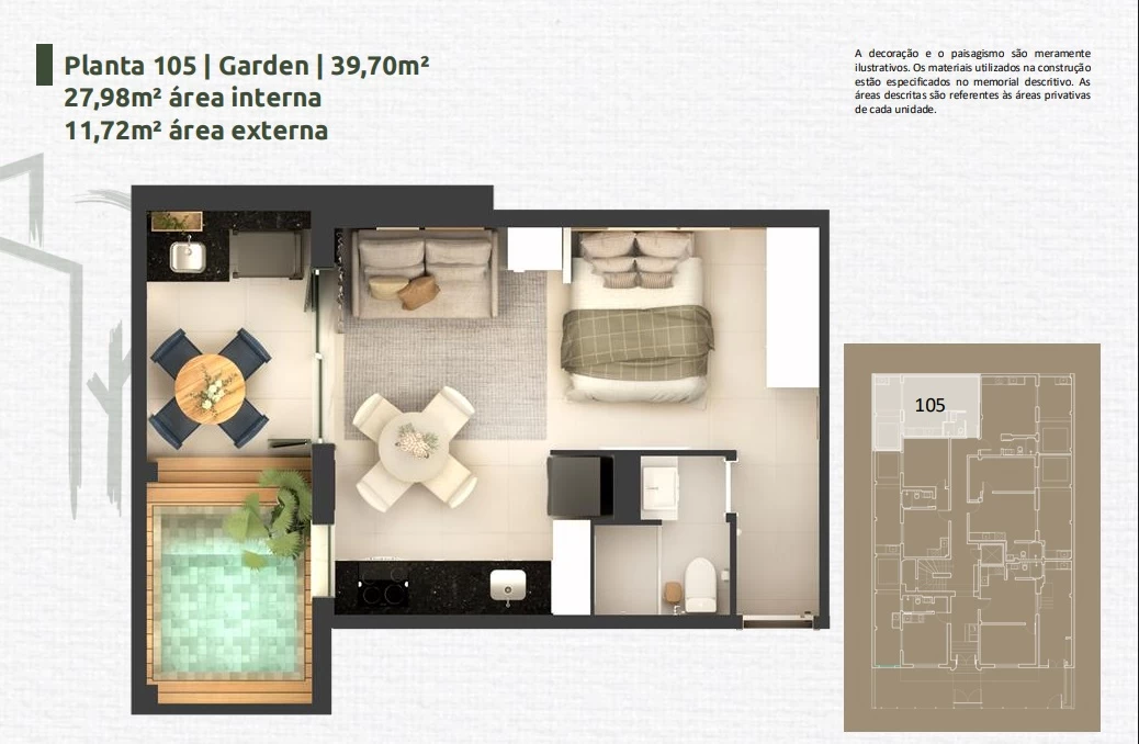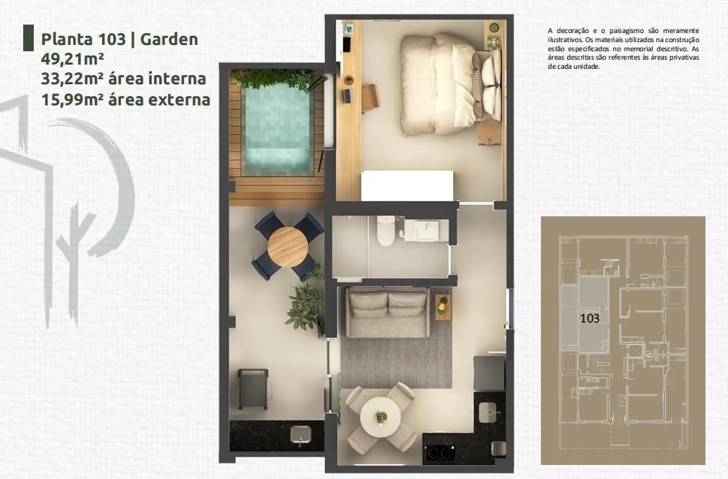Apartamento de 1 Quarto de 33,89m² a 45,24m².